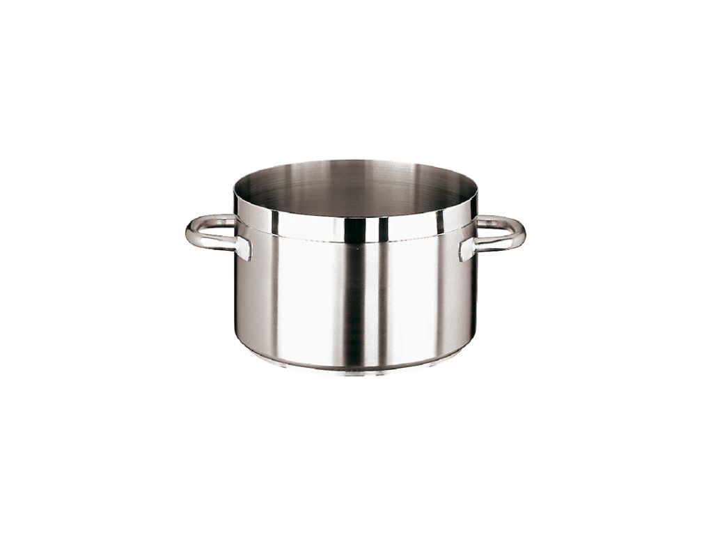 Nerezový kastrol určený pro profesionální použití a vhodný pro všechny druhy vaření na plynových, elektrických, sklokeramických a indukčních plotýnkách. Provedení z chromniklové nerezavějící oceli AISI 18/10 s vnitřním i vnějším satinovaným povrchem a leštěným zesíleným okrajem. Rovná trubková a tepelně nevodivá držadla. Tepelně difúzní sendvičové dno (nerez-hliník-nerez), které využívá 100% přijímaného tepla. Dno je za studena vyduté a za tepla ploché.