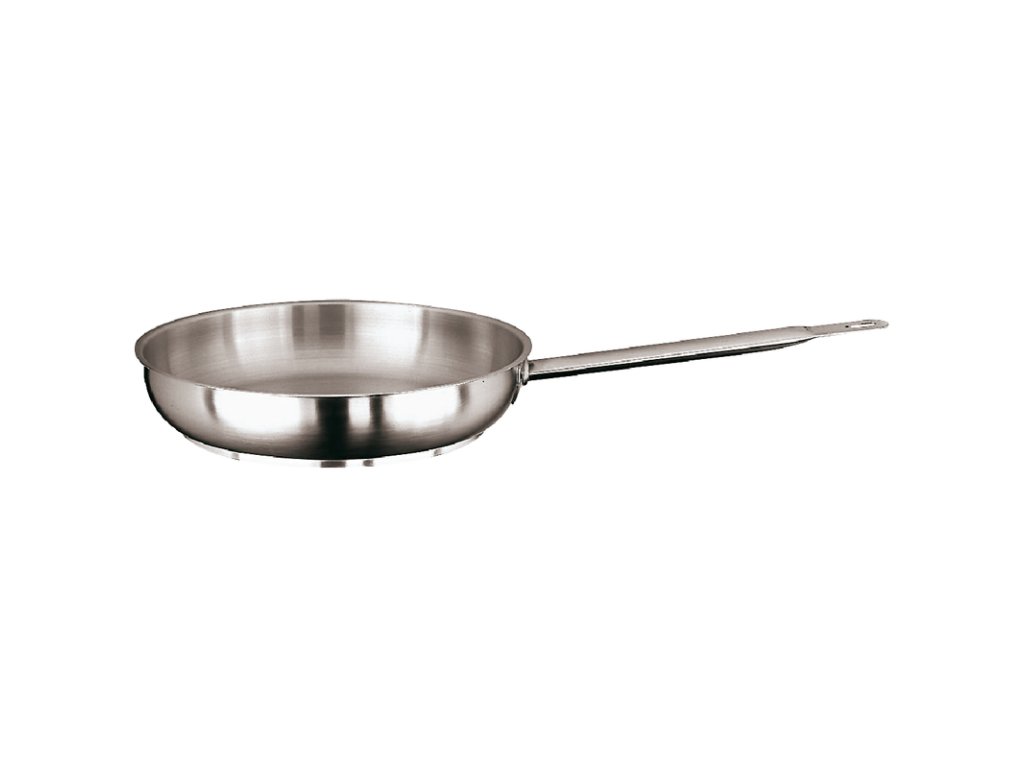 Nerezová pánev určená pro profesionální použití a vhodná pro všechny druhy vaření na plynových, elektrických, sklokeramických a indukčních plotýnkách. Provedení z chromniklové nerezavějící oceli AISI 18/10 s vnitřním i vnějším satinovaným povrchem a ohýbaným okrajem pro snadnější vylévání obsahu. Pánev má jedno rovné trubkové, tepelně nevodivé držadlo a tepelně difúzní sendvičové dno (nerez-hliník-nerez), které využívá 100% přijímaného tepla. Dno je za studena vyduté a za tepla ploché.