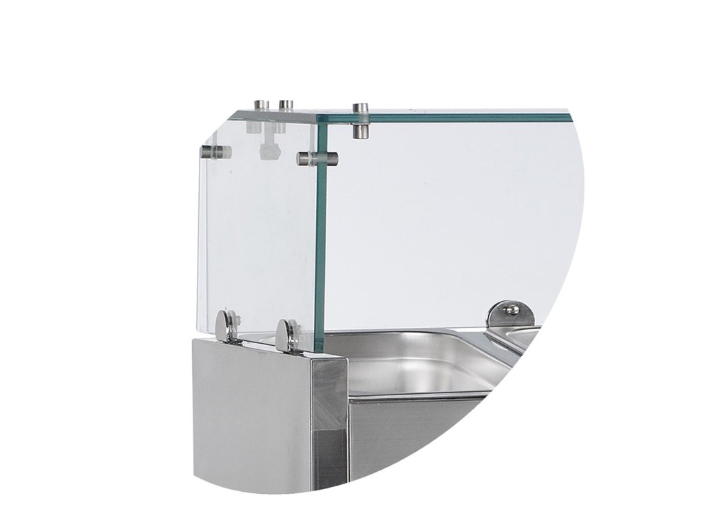 Skleněné krytí zajišťuje hygienickou ochranu surovin a zároveň umožňuje snadnou vizuální kontrolu. Nerezová konstrukce SS304 garantuje dlouhou životnost a snadnou údržbu. Díky elektronickému ovládání je možné nastavit optimální teplotu. Nastavitelné nožky umožňují přizpůsobení výšky nástavby dle potřeb pracovního prostoru.