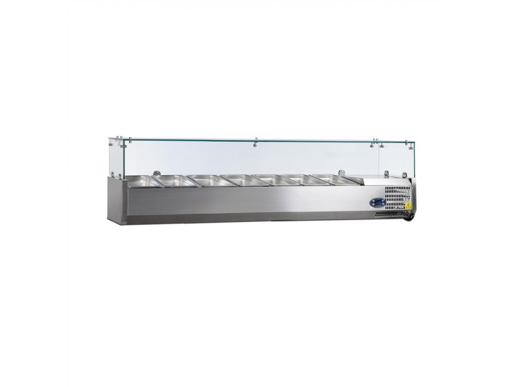 Tato stolní chladicí nástavba je ideálním doplňkem pro profesionální kuchyně a gastro provozy. Umožňuje efektivní uskladnění a snadný přístup k čerstvým surovinám. Je přizpůsobena pro 7 gastronádob GN1/3 (nejsou součástí balení) a nabízí pohodlnou organizaci ingrediencí během přípravy pokrmů.